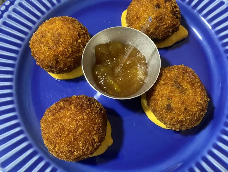 4 unidades de bolinhas de Copa Lombo Suíno defumadas no Dry Rub e cozidas lentamente, com um toque de Berbecue empanado da farinha Panko.