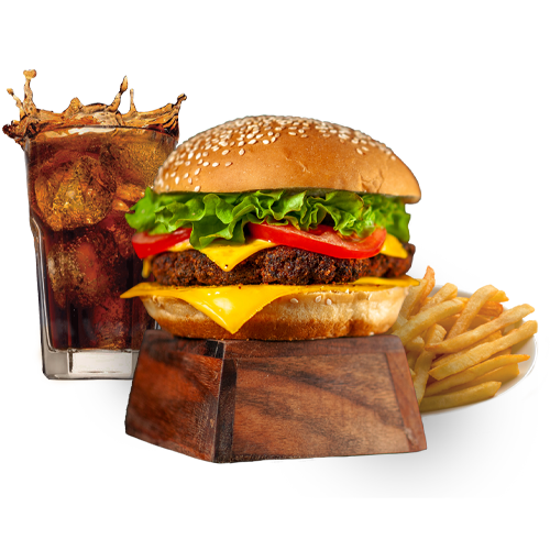 Sanduíche acompanhado com um Copo de Refrigerante e uma porção de Batata Frita.